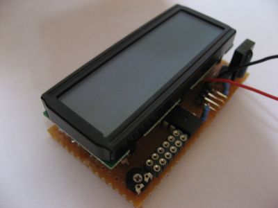 Die Schnittstelle zum Benutzer. Ein Atmega8 steuert das LCD im 4-Bit Modus an.
