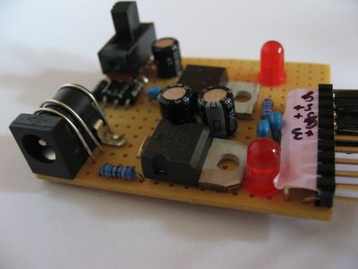 Zum Testen wurde ein Modul erstellt, welches 3.3V sowie 5.0V stabil bereitstellt. Links muss nur ein Netzteil mit mindestens 1A angeschlossen werden. |